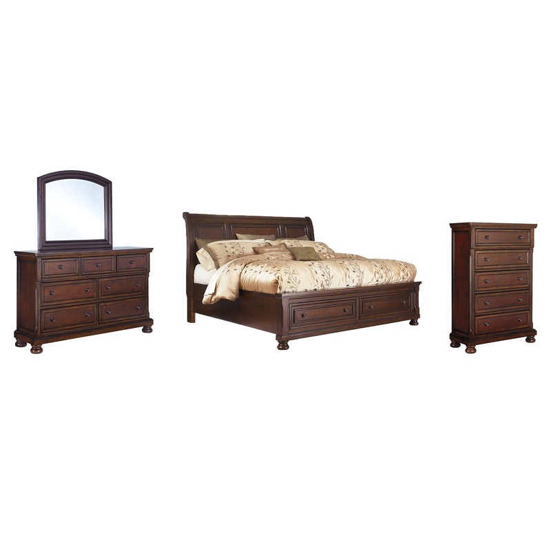 Porter California King Sleigh Bed with Mirrored Dresser and Chest