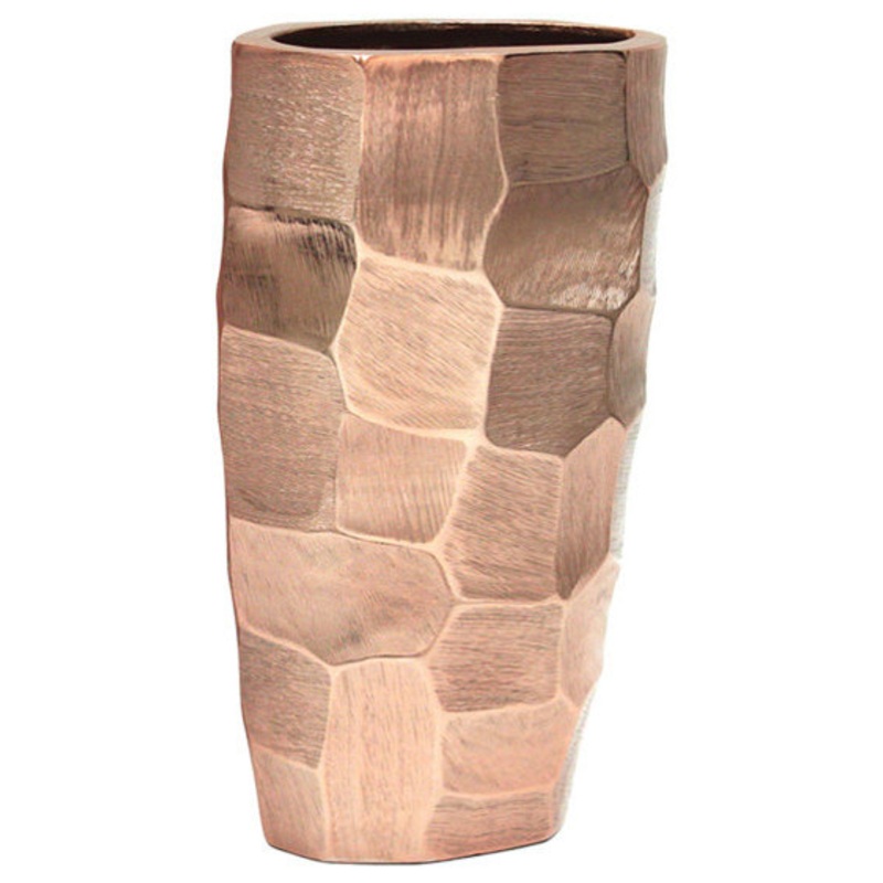 Made of polished aluminum. Available in three colors and two sizes. This is a beautiful vase to be used alone or with an arrangement Model # (MPN)3-2044COProduct ID106619154Manufactured ByGalorehomeSold ByHouzzSize/WeightW 4" / D 8" / H 12" / 3 lb.ColorCop