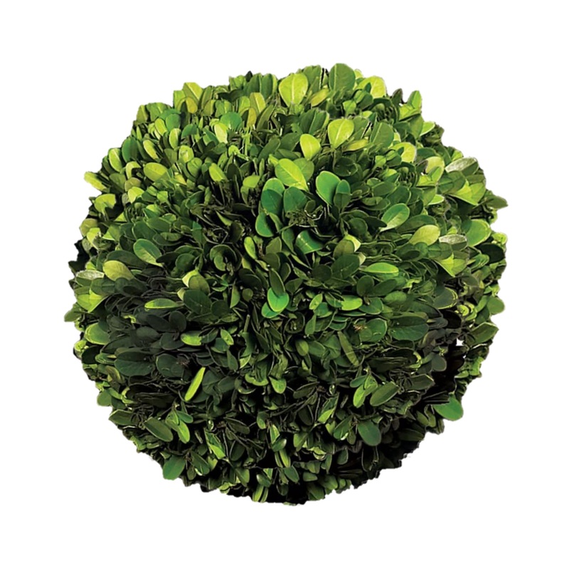 Our boxwood ball is crafted using genuine preserved boxwood. This is not a plastic / silk ball, it is made of real glossy dark green colored leaves and hence expect natural variations in color and texture. Great to hang greenery as decoration in a kitchen,