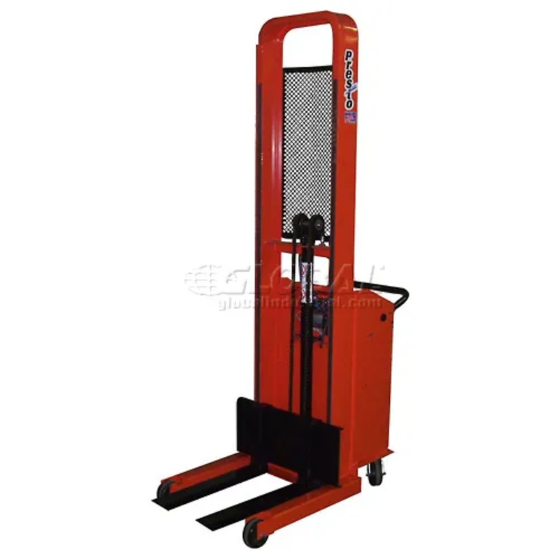 PrestoLifts Pacemaker BATTERY OPERATED LIFT STACKER TRUCKGeneral purpose power Lift Stacker makes quick work of a variety of moving and lifting jobs. Ideal for handling skids, bales, positioning work, loading trucks and stocking shelves. Ruggedly construct