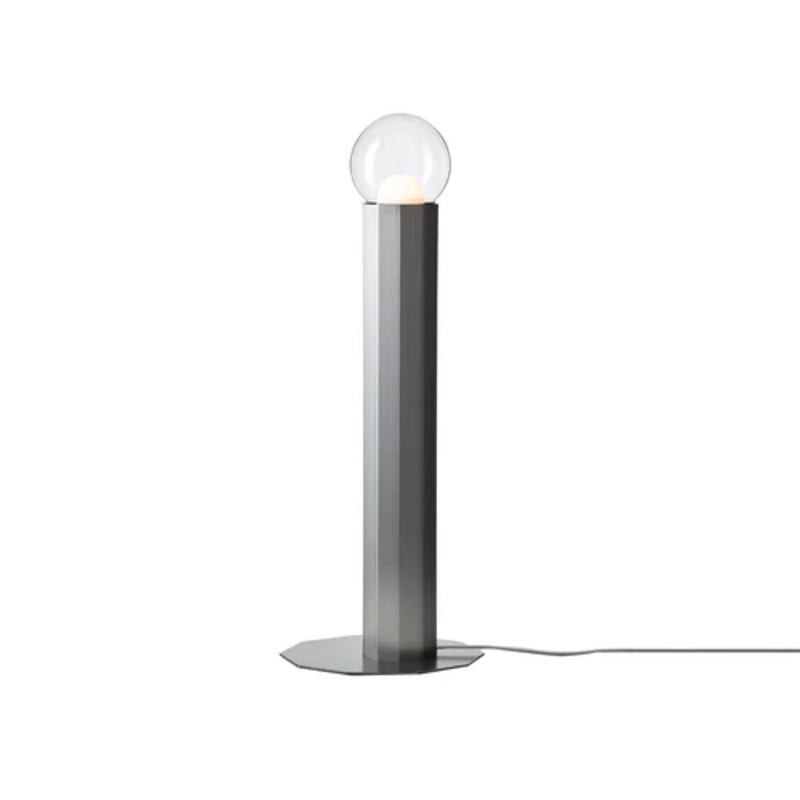 The dominant feature of the Prisma collection is an extravagant metal fixture with a distinctive finish. Composed of a hand-blown glass sphere, this lamp is complemented by a solid decagonal prismatic metal frame, which precisely gives the collection its name. The shape in combination with the striking surface reflects light at different and unexpected angles, like a prism. With a choice of different elegant finishes, the light is a bold artistic object in interior spaces that offers unique vertical, horizontal and diagonal compositions with subtle colorful reflections. Placed in a living room or professional studio, Prisma thanks to its structure and clear glass or gray smoked glass, forms a jewel with which to embellish interiors.