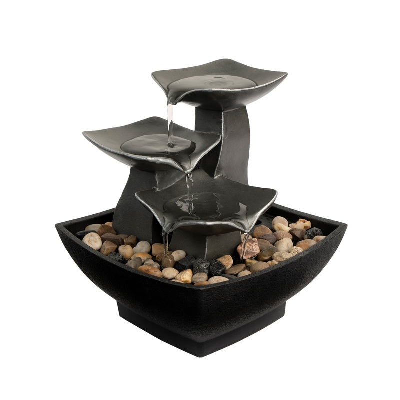 The soothing water sounds and modern look of the 7" Tabletop Water Fountain by Pure Garden brings tranquility, relaxation and beauty to your living or work area. The indoor fountain features a polyresin construction for durability, three tiers of contempor