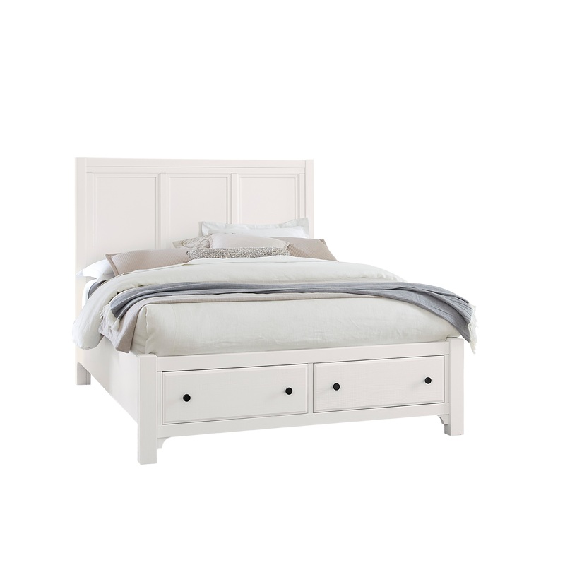 Queen Panel Bed w/ Storage Footboard Soft White
