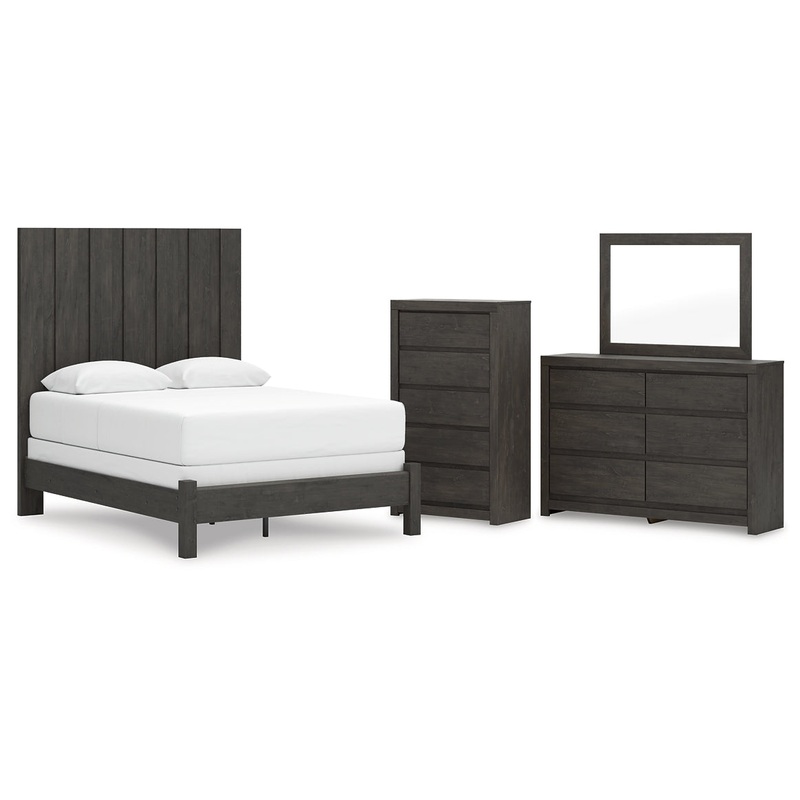 Find serene simplicity in the clean lines and dark neutral tones of this bedroom package. Its a sincere approach to modern elegance, giving you high style at a great value. A sleek hardware-less design creates a fuss-free look. Short on storage? Smooth-gliding drawers keep clothes and clutter neatly tucked away.