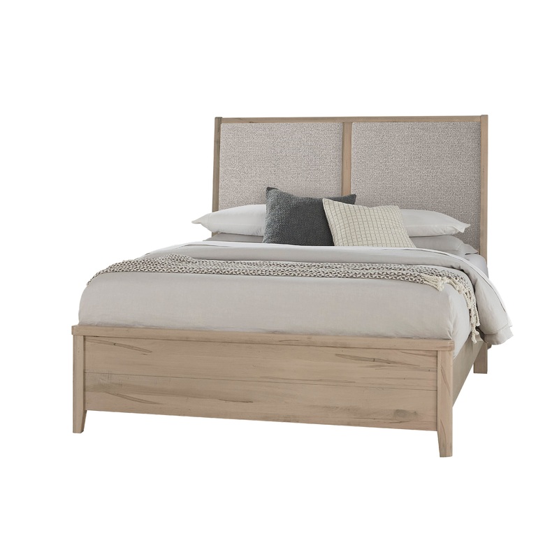 Upholstered bed boast a refined classic look that will stand the test of time. Styled with simple lines; the canted headboard is slightly angled for comfort. Features:Proudly Made in the USA Solid American Ambrosia Maple and Maple Veneers Mortise and tenon