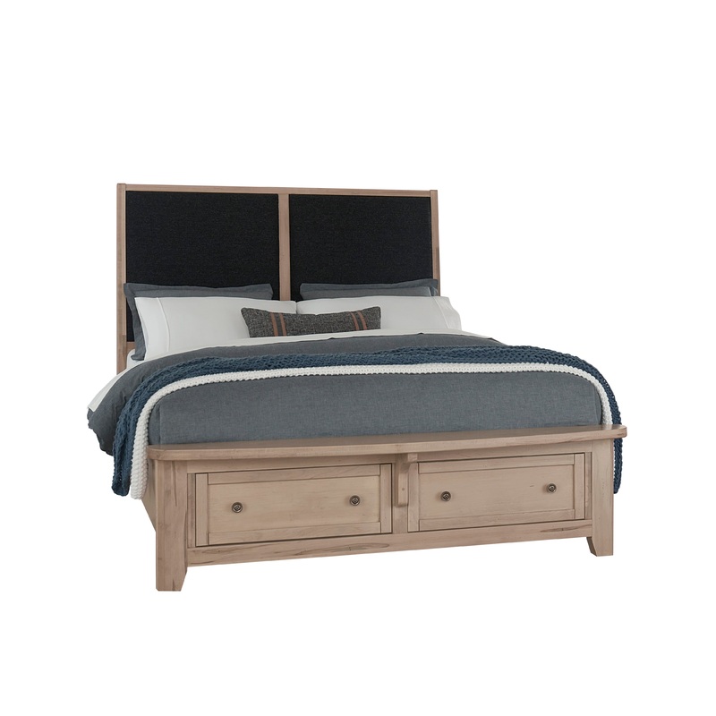 Queen Upholstered Bed with storage -Black Clear Maple