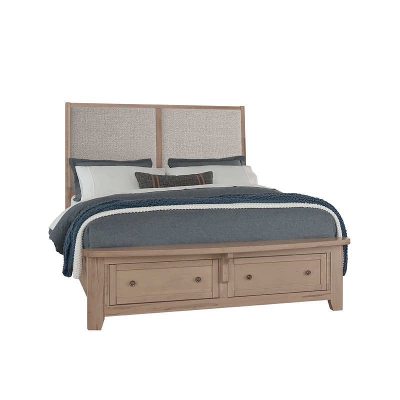 Queen Upholstered Bed with storage -Grey Clear Maple