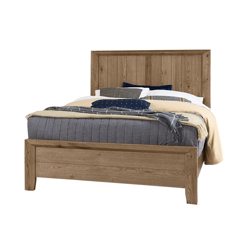 Rustic charm meets a more subdued transitional design in this attractive Panel bed. Also available with footboard storage Features:Made in the U.S.A. Vaughan Bassett has developed a patent-pending process that allows them to accelerate how wood ages. We ha