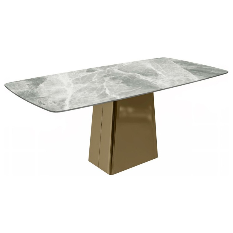 Quinix Series Dining Table, Gold Base With 62 Light Grey Sintered Stone Top – Contemporary – Dining Tables – by Bison Commerce
