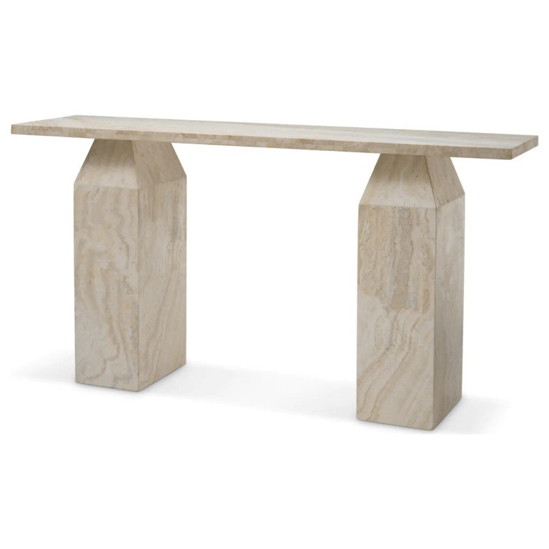 -Elevate your decor with the Eichholtz Console Table Tarragona, a masterpiece of sophisticated minimalism.Crafted from luxurious travertine, its unique natural beauty is showcased through variations in color, texture, and veining. The rectangular shape and