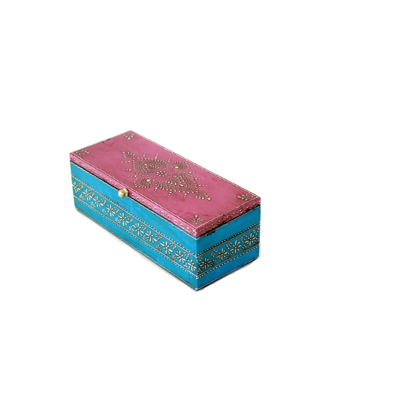 Rectangular Wooden Hand Painted Jewelry Box in Pink and Blue – 9.75″ Length – Asian – Jewelry Boxes And Organizers – by Resoursys Unlimited, Inc.