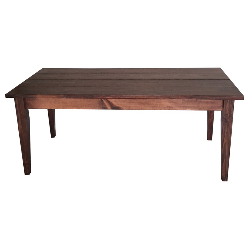 Red Mahogany Harvest table. This table has a simple but rustic plank top and tapered legs. -DESIGN -A simple, rustic design and dark color accentuates the beautiful wood grain of this farm table. -Handcrafted in the heartland -Hand-applied multi-step durab