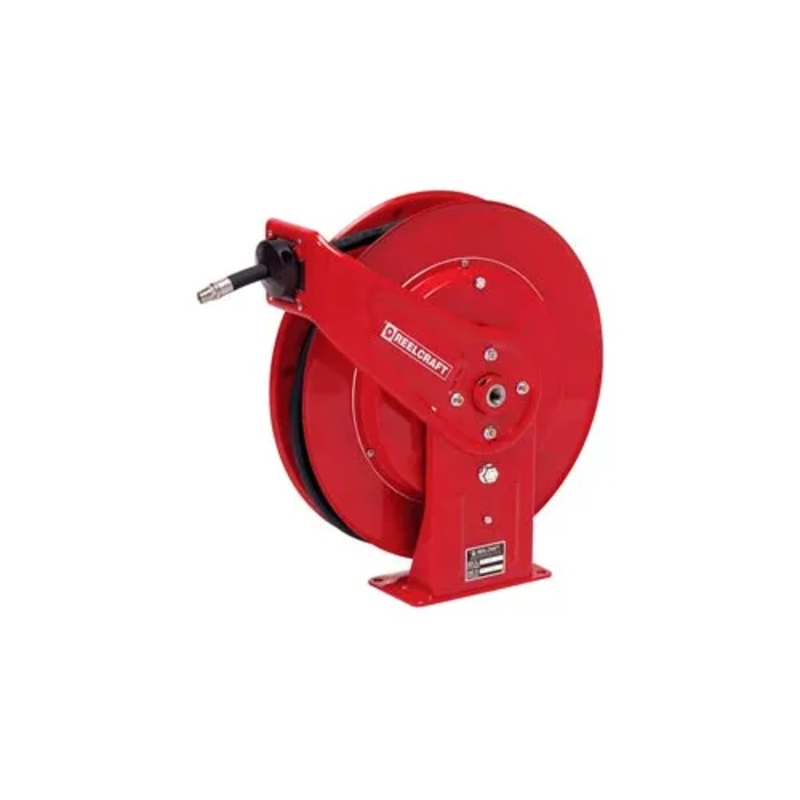 Heavy Duty, 1/2 x 50ft, 3250 psi, Oil With HoseHeavy Duty Spring Retractable Reels are very robust and ideal for the most demanding applications. The reel's base and guide arms are formed from high-grade steel and engineered with structural forms and gusse