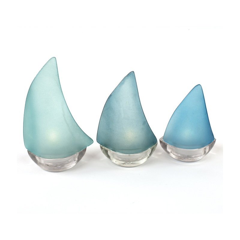 Decorating your table or mantel is smooth sailing when you have a fleet of our Regatta tealight holders. Each sail is formed by hand by an expert glass artisan. We recommend grouping multiple sets together for a dramatic effect.