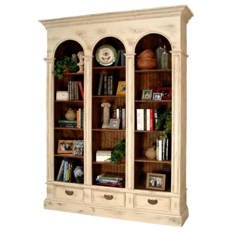 The stately and elegant Regency Bookcase features a beadboard interior back, 12 adjustable shelves, and 3 drawers with wooden drawer glides.