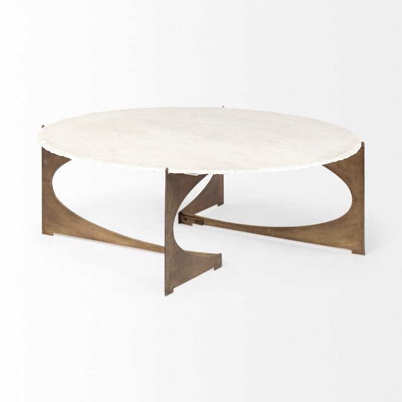 Marble and gold unite in a round coffee table with interesting side profiles.