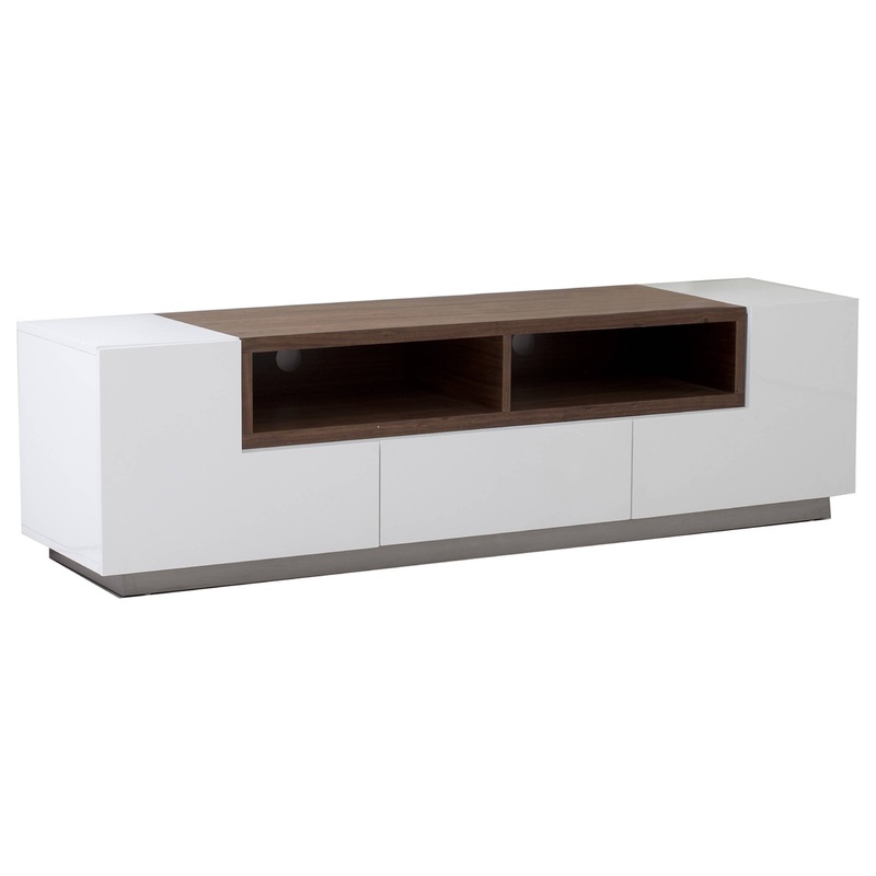 A low entertainment media console. It has two "L" shaped drawers, one middle drawer and two open compartments for components. Pre-drilled with holes in the back of compartments allows easy access for wires. Model # (MPN)MATRIX-S W/WProduct ID45008513Manufa