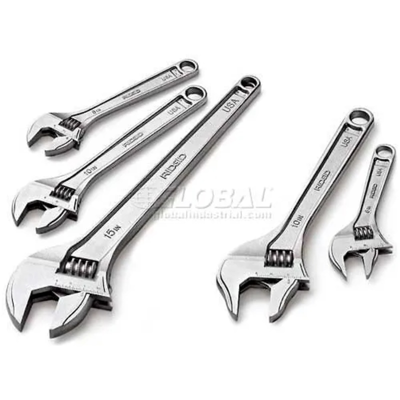 RIDGID Model No. 762 Adjustable Wrenches, 12" Adjustable, 1-5/16" Pipe CapacityHigh grade Chrome-Vanadium alloy steel. Forged and heat-treated for durability. Cobalt-plated finish to reduce rust and corrosion. Jaw scales in SAE and metric for quick adjustm