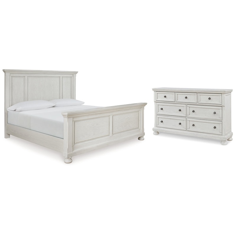 Elegant, timeless furnishings take your bedroom to the next level. Nothing does that better than this bedroom package. The antiqued white finish with a wonderful grain texture oozes sophistication, while dark bronze-tone hardware adds a sophisticated touch