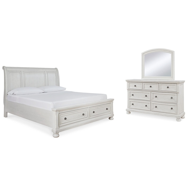 Robbinsdale King Sleigh Bed with Storage with Mirrored Dresser