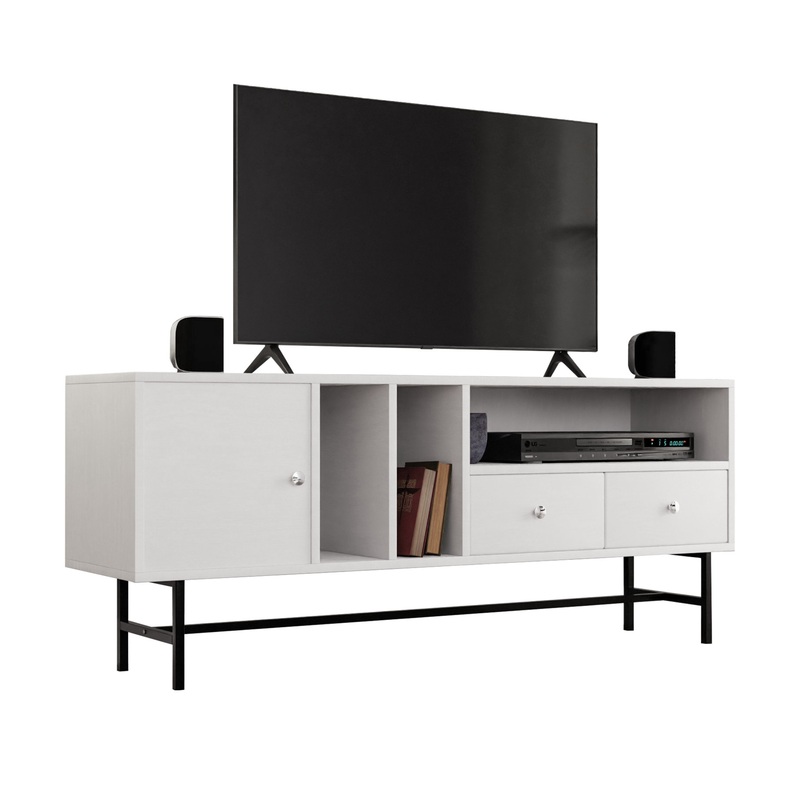 Item Specifications: -This TV stand combines open shelves, two drawers, and a spacious cabinet to provide versatile storage for media devices, books, and decorative items, ensuring organization and reducing clutter. -The high-quality MDF construction ensur