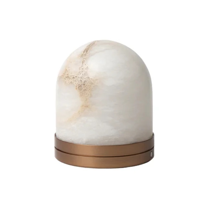 The alabaster stone used for the shade of this elegant cordless table lamp makes it more than just a lighting object, it also provides an elegant and sophisticated design. Roger features a circular base in anodised bronze and is complemented by a domed alabaster diffuser. The different types of veining on the diffuser allow the light to create ever different and unique reflections. Ideal in spaces like living rooms, bedrooms or professional studios, Roger is the perfect lamp for every interior.