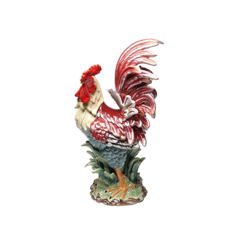 Decorate a side table or mantel with the Rooster Figurine. Made from hand-painted ceramic in bright red, green, and blue tones, this decorative rooster is charming and classic. Display it in a farmhouse style kitchen or living space. Model # (MPN)31978Prod
