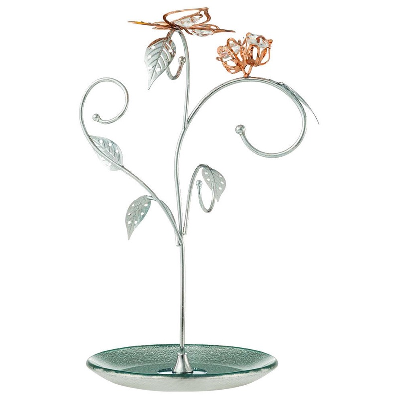 Rose Gold and Chrome Plated Jewelry Stand Elegant Floral and Butterfly Design – Contemporary – Jewelry Boxes And Organizers – by Matashi Crystals