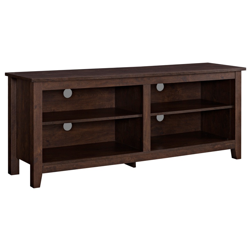 All furniture purchases are final. If furniture arrives damaged or is defective please call for assistance (800) 375-3403. Furniture Return Policy Features: Add style to your home with this trendy TV stand Features 4 open adjustable shelving and a cord management system Capable of supporting up to 250 pounds Perfectly complements a rustic and contemporary decor style Ships ready-to-assemble with step-by-step instructions Specifications: Height: 24″ Width: 58″ Depth: 16″