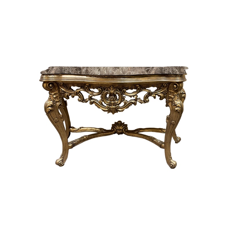 With a hand-crafted gorgeous ornate design, this eye-catching console table pairs very nicely with a mirror or art piece atop it. Features a beautiful black marble top and antique gold base. Perfect for your entrance, foyer, or hallway. Model # (MPN)FON-27
