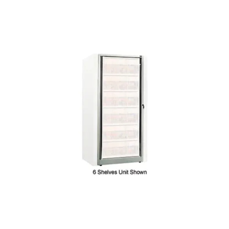The Ez2 base is formed out of 13 gauge steel with 13 gauge steel formed U-Channel reinforcements. These 13 gauge steel channels have a 4″ wide x 3-1/2″ deep cross section and run the full length and width of the base. At each corner, a welded steel 11 gauge gusset adds strength and rigidity to the base. The base mechanism provides 90 indexing of the rotary file cabinet. Each Ez2 unit has (4) upright posts with dual durometer PVC closing strips. Cabinet Base Only. Shelving and Drawers Sold Separately.