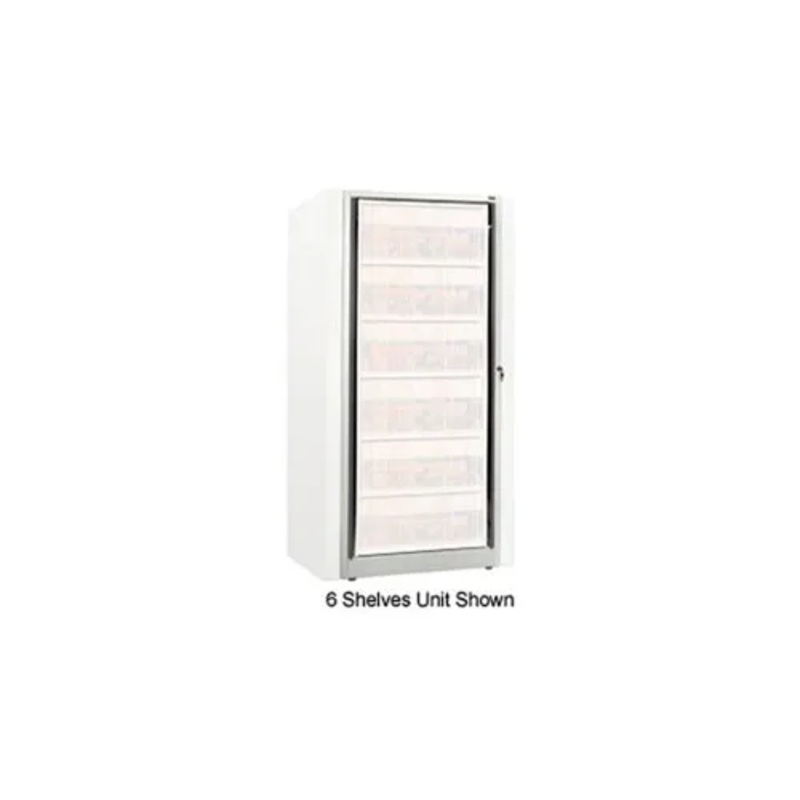 The Ez2 base is formed out of 13 gauge steel with 13 gauge steel formed U-Channel reinforcements. These 13 gauge steel channels have a 4″ wide x 3-1/2″ deep cross section and run the full length and width of the base. At each corner, a welded steel 11 gauge gusset adds strength and rigidity to the base. The base mechanism provides 90 indexing of the rotary file cabinet. Each Ez2 unit has (4) upright posts with dual durometer PVC closing strips. Cabinet Base Only. Shelving and Drawers Sold Separately.