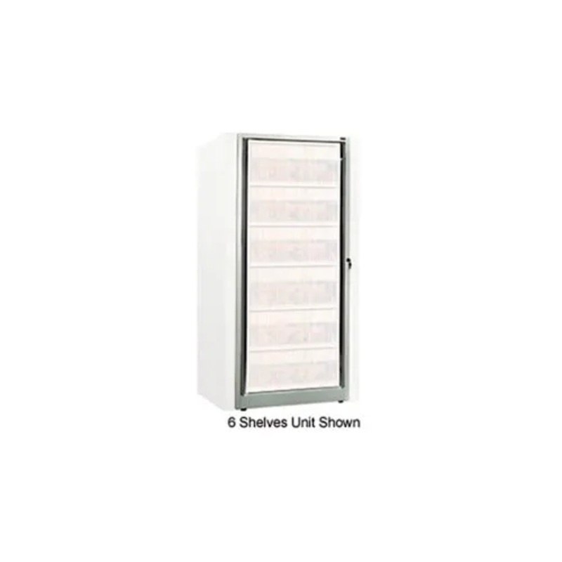 The Ez2 base is formed out of 13 gauge steel with 13 gauge steel formed U-Channel reinforcements. These 13 gauge steel channels have a 4″ wide x 3-1/2″ deep cross section and run the full length and width of the base. At each corner, a welded steel 11 gauge gusset adds strength and rigidity to the base. The base mechanism provides 90 indexing of the rotary file cabinet. Each Ez2 unit has (4) upright posts with dual durometer PVC closing strips. Cabinet Base Only. Shelving and Drawers Sold Separately.