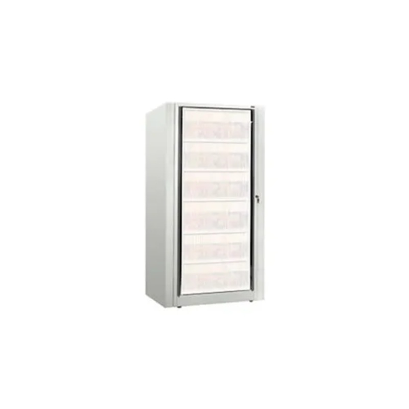 The Ez2 base is formed out of 13 gauge steel with 13 gauge steel formed U-Channel reinforcements. These 13 gauge steel channels have a 4″ wide x 3-1/2″ deep cross section and run the full length and width of the base. At each corner, a welded steel 11 gauge gusset adds strength and rigidity to the base. The base mechanism provides 90 indexing of the rotary file cabinet. Each Ez2 unit has (4) upright posts with dual durometer PVC closing strips. Cabinet Base Only. Shelving and Drawers Sold Separately.
