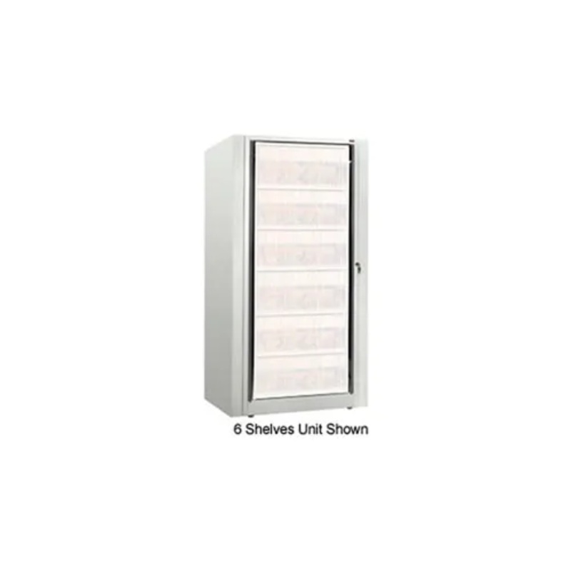 The Ez2 base is formed out of 13 gauge steel with 13 gauge steel formed U-Channel reinforcements. These 13 gauge steel channels have a 4″ wide x 3-1/2″ deep cross section and run the full length and width of the base. At each corner, a welded steel 11 gauge gusset adds strength and rigidity to the base. The base mechanism provides 90 indexing of the rotary file cabinet. Each Ez2 unit has (4) upright posts with dual durometer PVC closing strips. Cabinet Base Only. Shelving and Drawers Sold Separately.