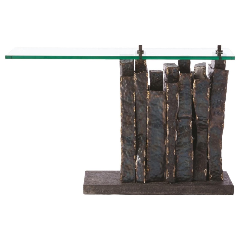 Rustic Industrial Iron Sculpture Console Table Strips Brutalist Torched Metal – Industrial – Console Tables – by My Swanky Home