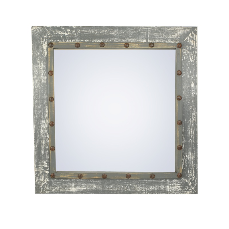 We take pine wood to create this unique mirror and finished it off by adding hand hammered rustic iron clavos throughout. We distress this one of a kind piece in an antiqued, distressed gray tones . Model # (MPN)Rustic Mirror-Gray SierraProduct ID83081030M