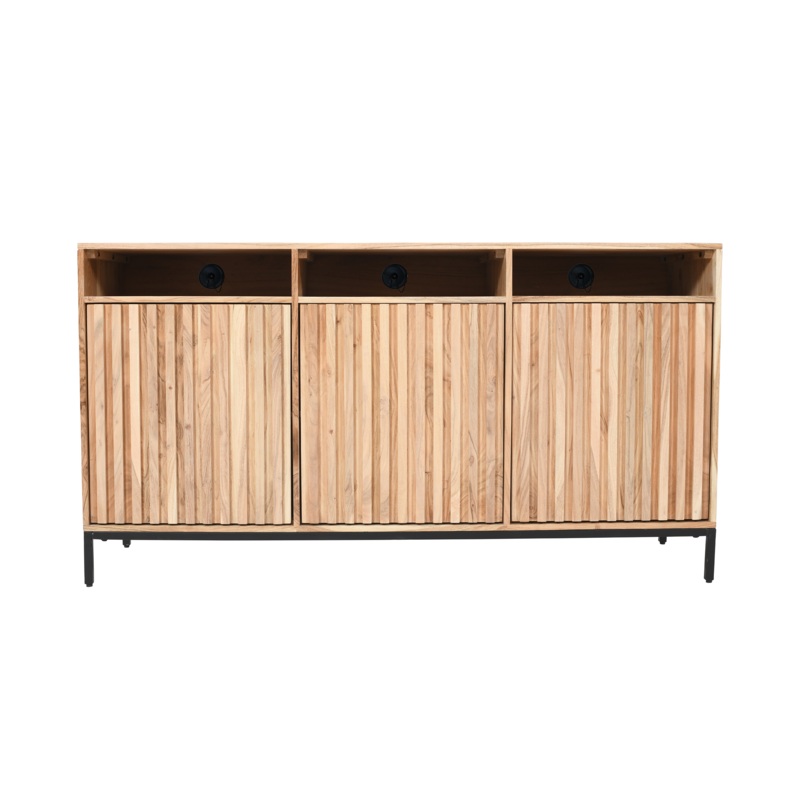 - Solid Acacia Wood and Veneer Construction with Unique Fluted Door Design