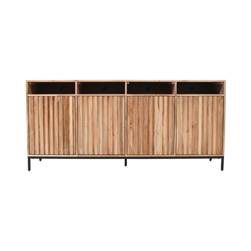 - Solid Acacia Wood and Veneer Construction with Unique Fluted Door Design