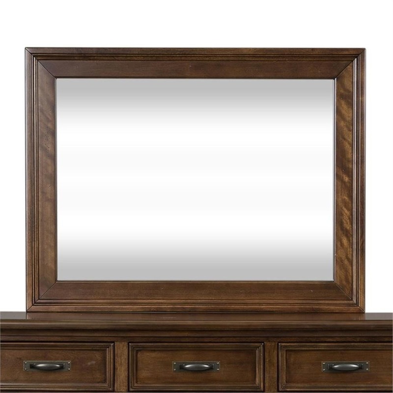 This beveled mirror adds a stylish finishing touch to the dcor of your bedroom. The tobacco finish is accented by the double framed mitered mirror frame, adding a fashionable twist to a traditional piece.