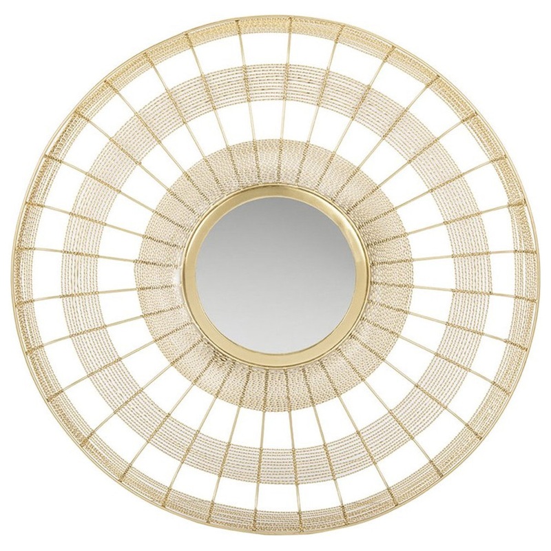 Bring elegance to any living room, dining room, or foyer with this contemporary mirror. Its intricate wire border and layered pattern is finished in shiny brass. Features: -Finish: Shiny Brass -Material: Pine Wood, Metal, Glass Specifications: -Overall Pro