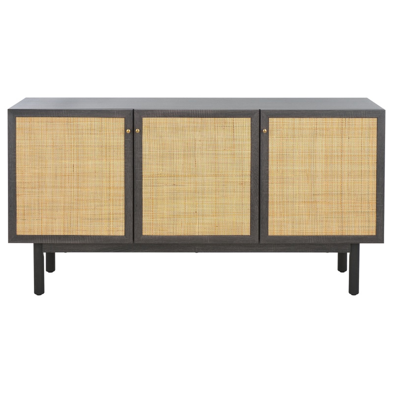 Liven Up Any Corner With Our Modern And Texturally Rich Aino Sideboard. Showcasing A Compelling Mix Of Materials, Our Sideboard Presents A Versatile And Charming Storage Solution. Its Facade Is Enriched With A Rattan Mesh To Lend A Warm And Breezy Look To Any Room. A Distressed Black Finish Accentuates The Rich Textural Appeal Of Our Charming Sideboard. Its Round Gold Pulls Open Up To Three Roomy Cabinets. Besides Housing All Your Media Equipment, Our Spacious Sideboard Can Also Be Used To Store Your Living Room Essentials, Dinnerware, And Table Linens.