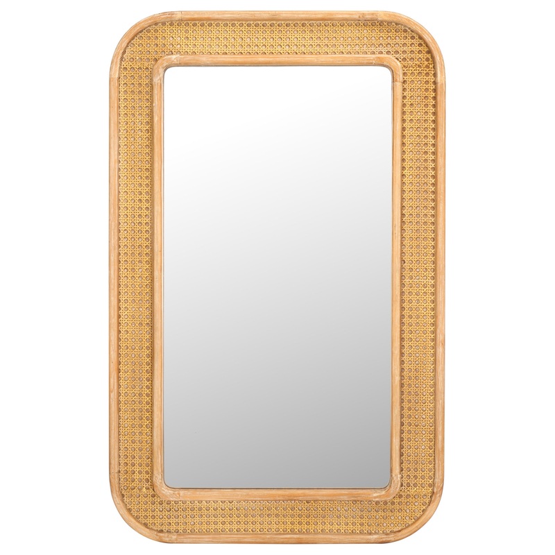 The Alessa mirror captivates with a detailed, textured pattern adorning the frame’s perimeter, infusing subtle visual interest. Its clean lines and versatile natural finish make it a perfect fit for various interior settings, offering a functional and stylish choice for those looking to enrich their space.
