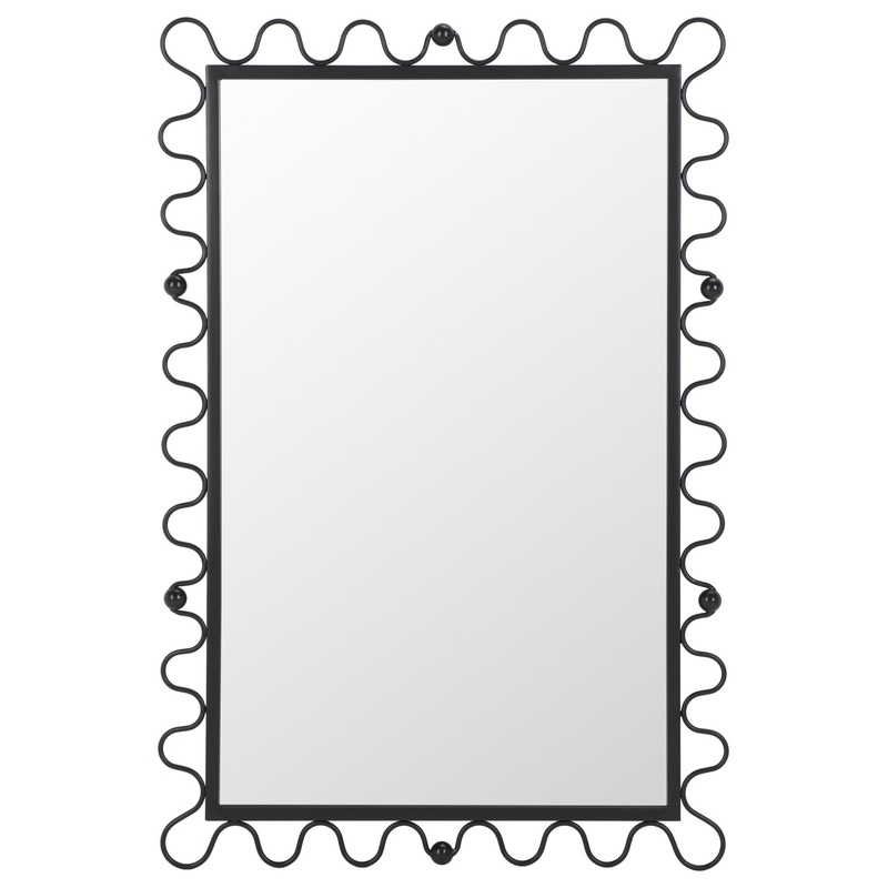 Introducing the Cinq 24″ mirror a striking addition to any interior space. Crafted with an elegant wavy design, this artistic piece brings a dynamic touch to your wall decor. The bold black color of the metal tube frame offers a sleek and versatile look, matching seamlessly with various color schemes and design themes. Accentuated with chic metal ball details, this mirror provides an attractive focal point that is both functional and stylish. Perfect for checking your reflection or adding light and the illusion of more space, the Cinq mirror is a unique and tasteful choice for your home or office.