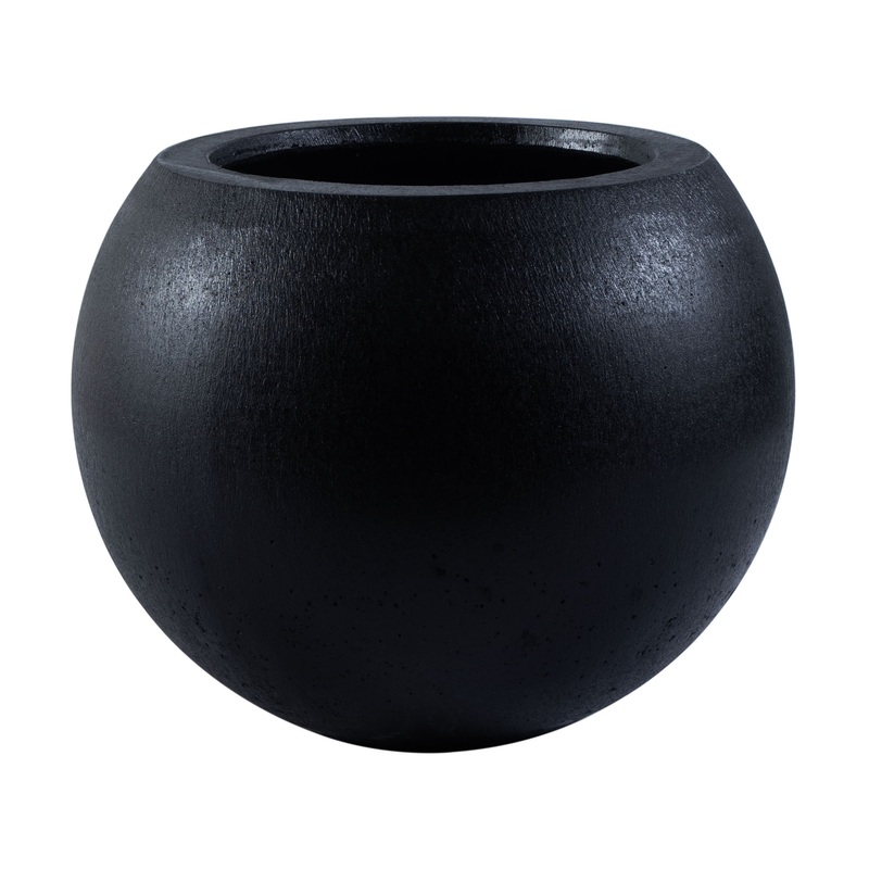 Styled after ancient ceramic artistry, this Gerand Planter embodies the charm of outdoor living. The black stone tone pairs beautifully with its orb shape, perfect for highlighting the striking colors of summertime blossoms. -Material: Concrete Ficonstone