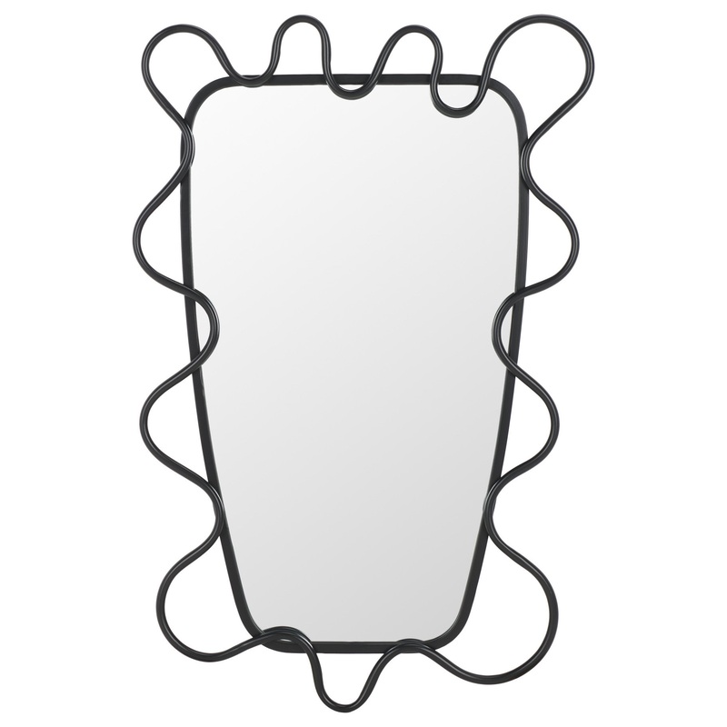 Make a statement in your living space with the Nova 24" mirror. This striking piece features a bold black metal tube frame that encases the reflective surface with an artistic twist. The undulating wavy design of the frame adds a dynamic movement to your w