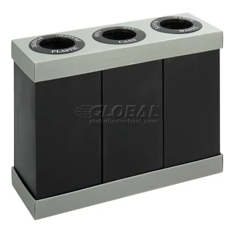 Safco Recycling Center For Plastic/Cans/Waste, 84 Gallon, Black/Gray