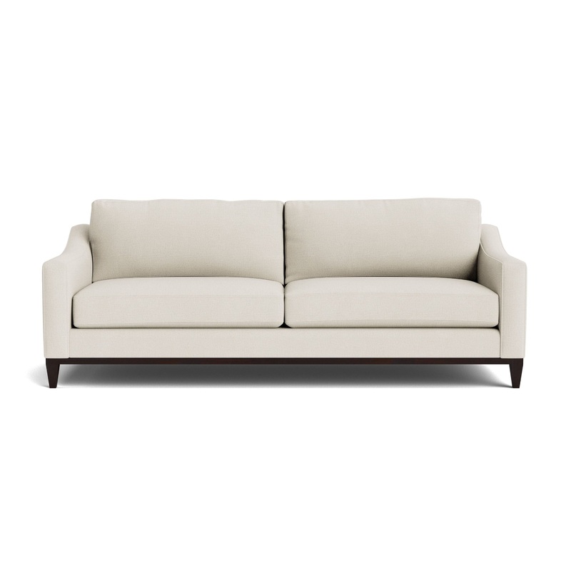 Description The grand scale and elegant sloping lines of the Sanford fabric sofa are the perfect matches for a dramatic setting. Relax into a deep seat, accented by a low modern seat depth and high leg. Choose more fabric colors in-store, as well as a wood