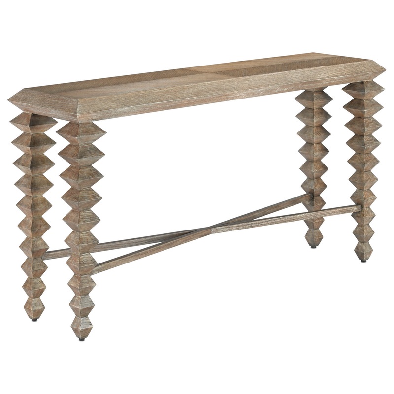 The wire-brushed and cerused finish on our Saranya Pepper Console Table, which we call light pepper, highlights the wood grain on this oak console table. Aimee Kurzner was thinking of the natural modern trend when she designed this family of products, whic