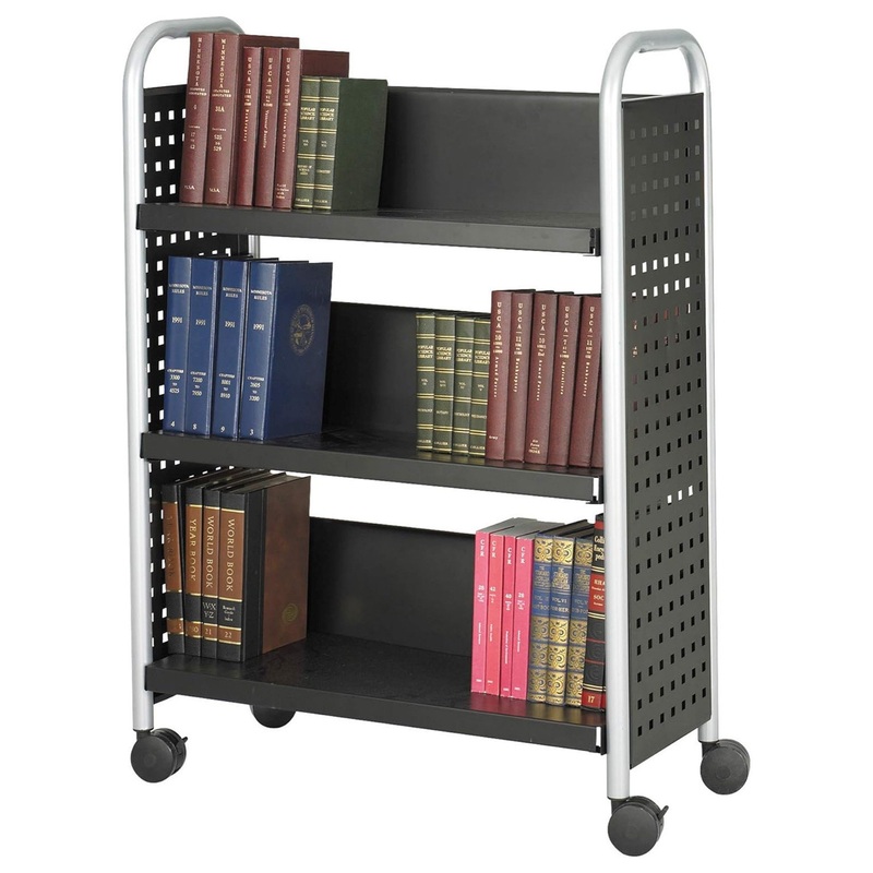 Perfect for use in libraries, schools or any work area with a large collection of books. All-steel construction with unique hole pattern design is accented by tubular steel legs. Oversized casters for easy maneuverability. Black powder coat finish for dura
